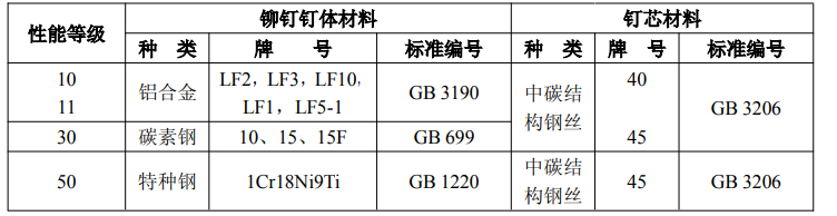 鉚釘釘體材料的規(guī)定